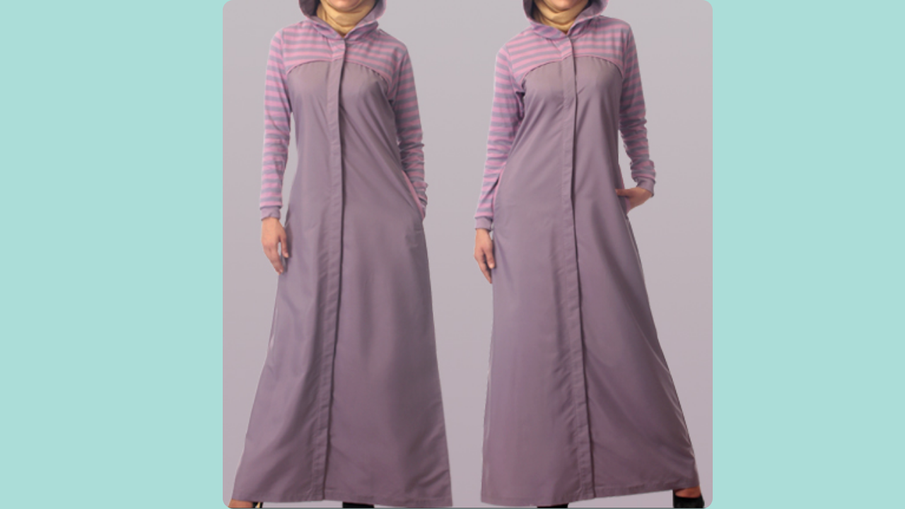 After much back and forth I picked out a Jilbab from their current season which they then sent me. This purple and grey sporty number (SR-S13-R04)